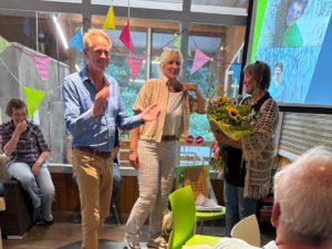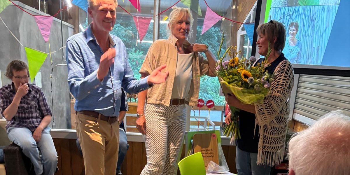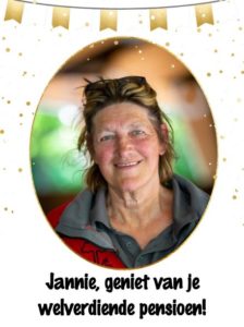 Dinsdag 8 juli was een bijzondere dag bij Manege Onder de Linde: de laatste werkdag van Jannie Russchen na maar liefst 32,5 jaar trouwe dienst. Jannie mag nu genieten van haar welverdiende pensioen! Het werd een dag vol warmte en waardering. De hele dag door werd Jannie verrast met grappige cadeautjes en lieve attenties. ’s Avonds volgde een feestelijk afscheid in de kantine, omringd door collega’s en vrijwilligers van de manege. Jannie was één van de pioniers van Manege Onder de Linde. Met haar enorme inzet, betrokkenheid en warme persoonlijkheid heeft zij een onuitwisbare bijdrage geleverd. Ze was een echt mensenmens: altijd verbindend, positief en gericht op wat wél mogelijk is. Dankzij haar hebben we vele ruiters mogen helpen genieten van het paardrijden.